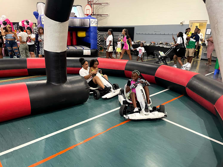 Our go-kart track is equip with 2 fast and furious go-karts that are suitable for both kids and adults up to 180lbs. Depending on set speed (10-26 mph) the karts will last up to 2hrs of race time.
